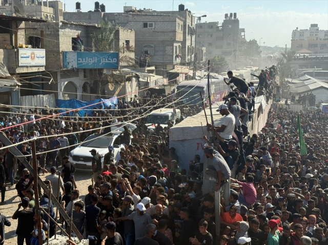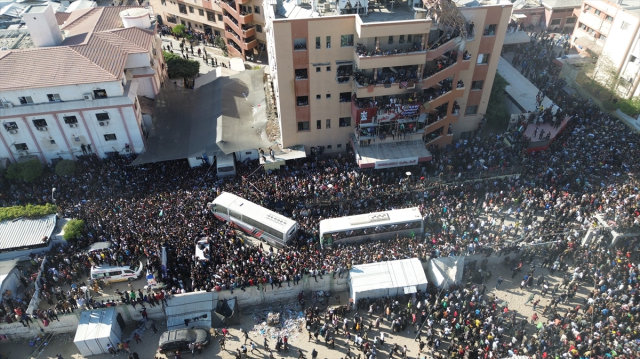 Esirler, ilk olarak Refah’ın kuzeyindeki Moraj bölgesine ulaştıktan sonra sağlık kontrolleri ve yapılacak etkinlik için Han Yunus’taki Nasır Hastanesi’ne götürüldü. Esirleri karşılamak için çok sayıda Filistinli bölgede toplandı.